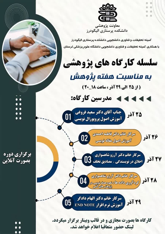 بمناسبت هفته پژوهش و فناوری سلسله کارگاه‌های پژوهشی بصورت آنلاین برگزار خواهد شد.